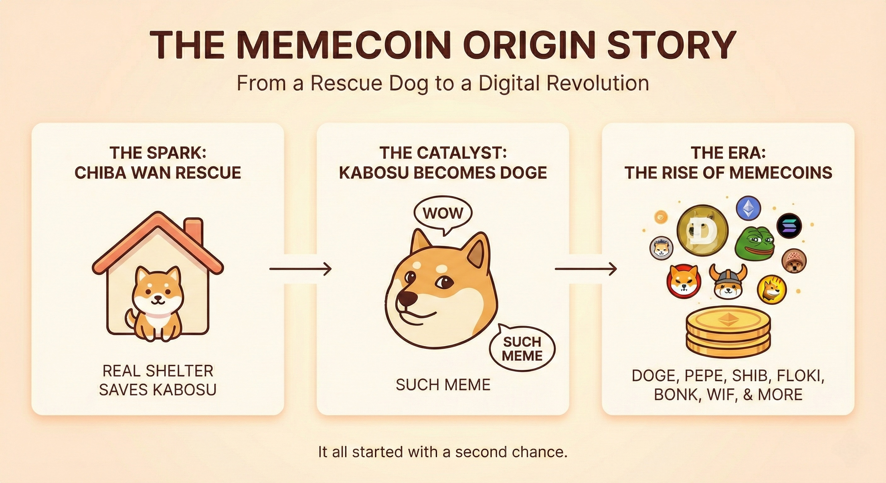 Inspired by Chiba Wan, the Japanese rescue shelter that saved Kabosu – the Doge who sparked the global memecoin revolution.